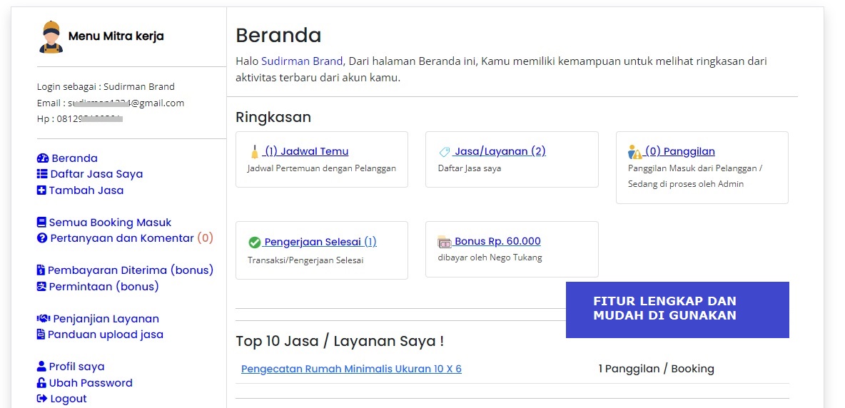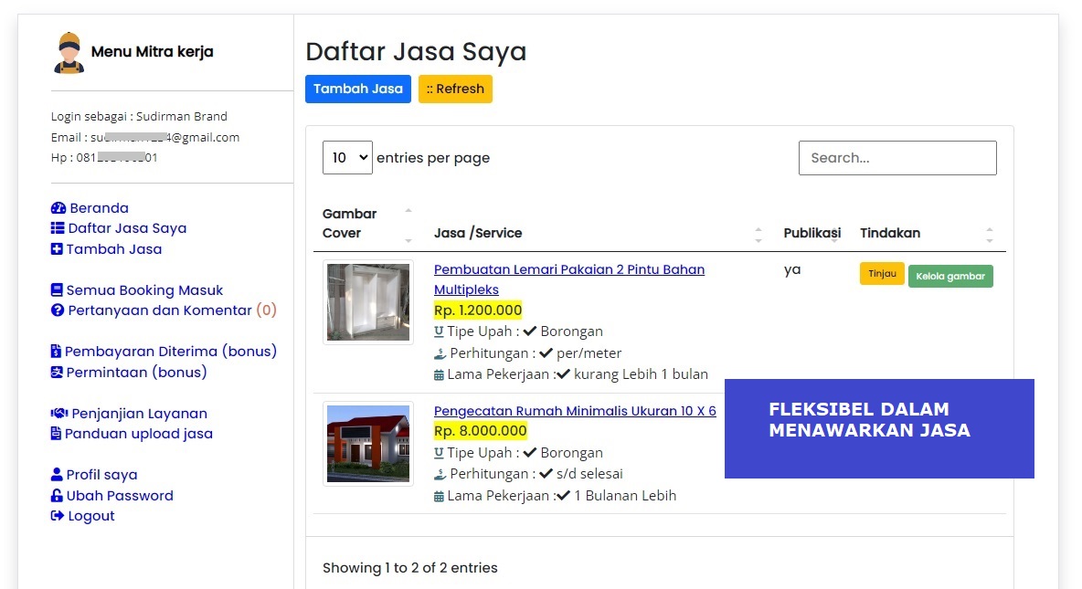 Tingkatkan basis pelanggan Anda melalui wadah/platform NegoTukang.Com. kami akan membantu Anda meningkatkan Panggilan Pekerjaan. , Anda dapat menawarkan jasa kepada Masyarakat Kota Tangerang/daerah Sekitarnya tanpa perlu Repot.